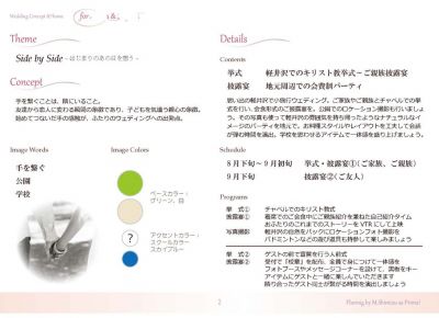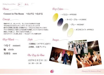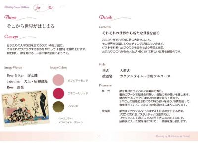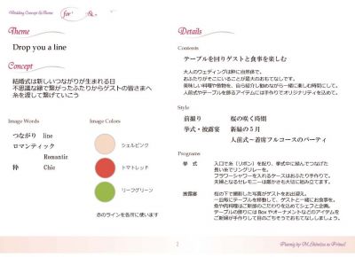 それぞれの想いやバックボーンから、コンセプト&テーマ、そして具体的な演出の提案まで盛り込んでご提案しています。